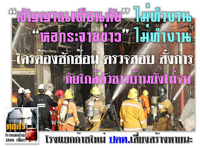 กับประชาชน ที่ล้มเหลวสิ้นเชิง กรณีโรงงานระเบิด” วันนี้ เมื่อเหตุภัยเกิดขึ้นจริงแล้ว จะเห็นได้ว่า ที่ซักซ้อมกัน